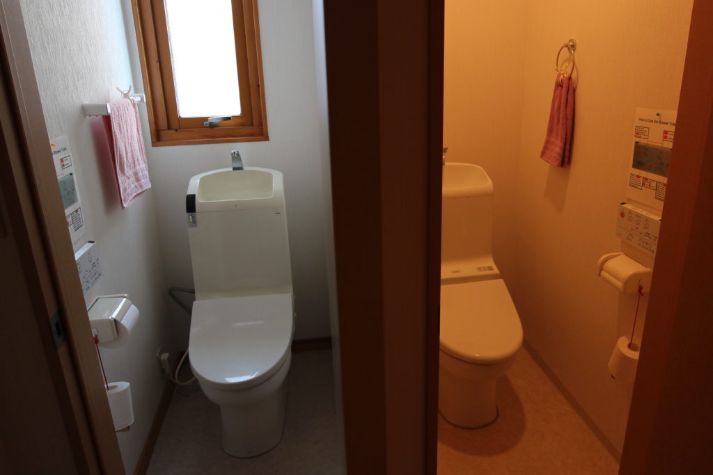 受付のあるリビングはゲストのみなさんの共有スペースです。ご自由にご歓談下さい。ゲスト専用の冷蔵庫・電子レンジがご利用頂けます。トイレは3か所、ウォシュレット完備です。ユニットバスに浴槽はありますが、シャワーのご利用をお願いします。